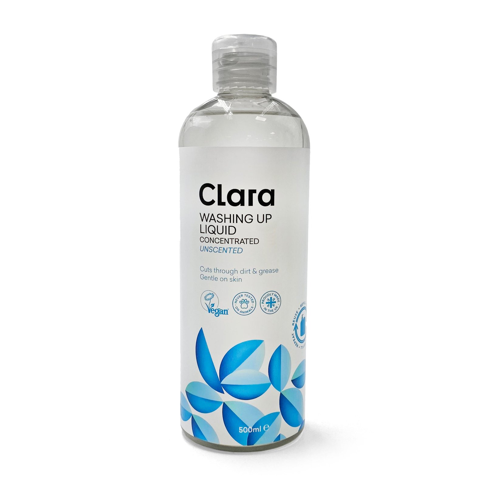 Clara Unscented Washing Up Liquid uses the power of plants to cut through grease and grime on your cutlery and crockery without leaving any harmful residues behind. Gentle on your hands and perfect to use by those who are sensitive to strong scented products. Kind to skin and cuts through dirt & grease. Our formula is certified Vegan by the Vegan Society and we never test on animals. Free from petrochemicals, GMO and allergens, and our packaging is recycled, recyclable and refillable. Our products are proudly made in the UK and our 5L and 20L refill containers use a closed loop system. Your local retailer can return the containers to us to be cleaned, refilled, and reused again and again. Keep hold of your empty bottle and refill.